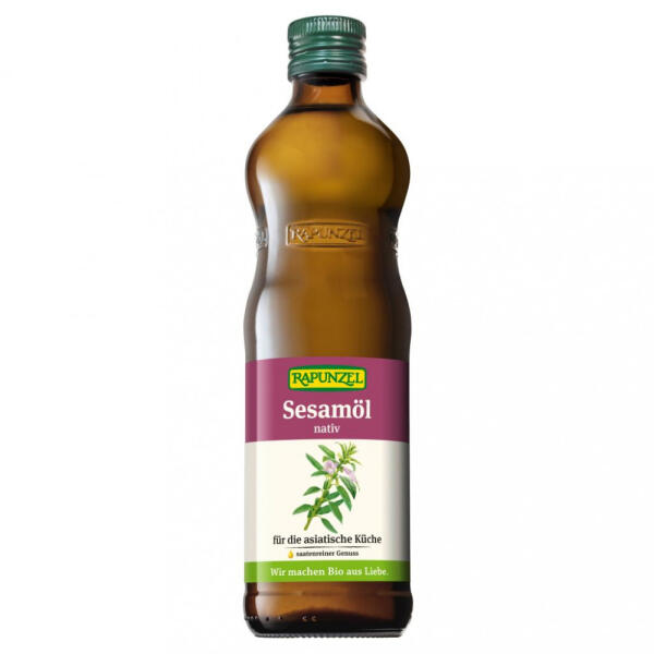 Szezámolaj, szűz ellenőrzött ökológiai gazdálkodásból származó szezámból hidegen sajtolva. A szezámolaj legnagyobbrészt linol- és olajsavból áll, így kiegyensúlyozott zsírsavakat tartalmaz. Aromás íze minden ételnek egzotikus jelleget kölcsönöz. Ellenőrizte: DE-öKO-006. Származási hely: nem EU-mezőgazdaság. Tápérték 100 g termékre: Energia: 3700 KJ/ 900 kcal Zs