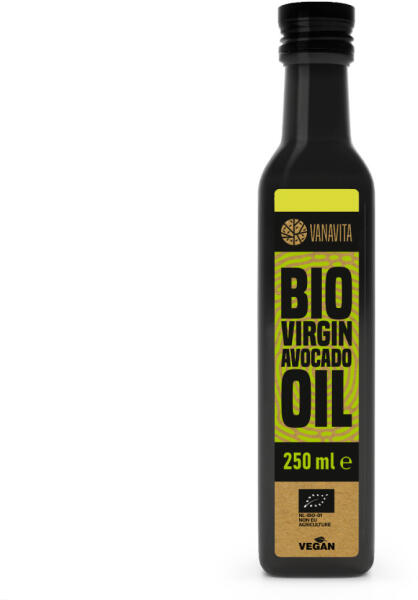 A BIO Szűz avokádóolaj organikusan termesztett avokádóból készül. 100%-ban növényi alapú összetétele kellemes, lágy ízt biztosít. Egyszeresen- és többszörösen telítetlen zsírsavakat tartalmaz. Remek választás egészséges saláták, öntetek és különböző pácok elkészítéséhez. BIO Szűz avokádóolaj – 100%-os tisztaságú olaj organikus avokádóból, kellemes