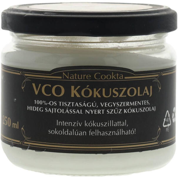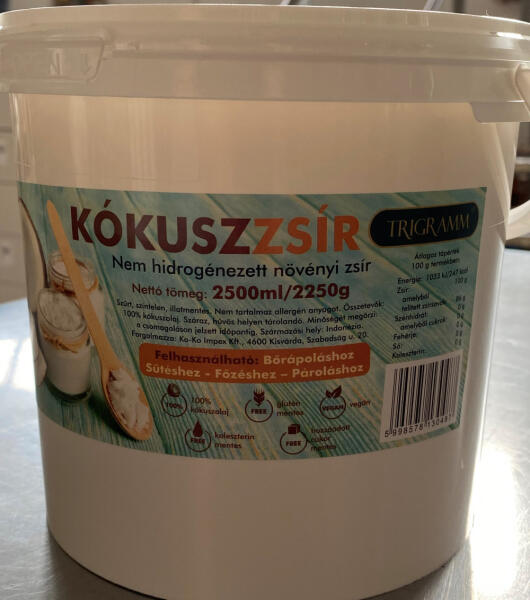 Tökéletes sütéshez, főzéshez, illetve bőrálpoláshoz. Nem hidrogénezett termék, nem tartalmaz semmilyen hozzáadott anyagot. Ajánljuk mindenki számára, szinte bármilyen diétába beilleszthető. Összetevők: 100% kókuszolaj Jellemzők laktózmentes Igen tejmentes Igen gluténmentes Igen tartósítószer-mentes Igen tojásmentes Igen pálmaolajmentes Igen GMO-mentes Igen vegán Igen