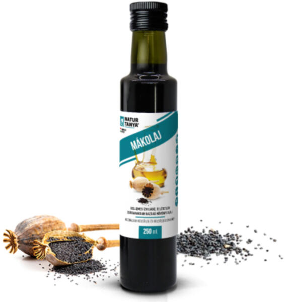 Natur Tanya® MÁKOLAJ - Hidegsajtolással készült, prémium gourmet olaj, külsőleg és belsőleg 250ml NATUR TANYA PRÉMIUM MÁKOLAJ A Natur Tanya ákolaj adalékanyagmentes, prémium minőségű, világossárga színű, teljesen szagtalan és meglehetősen kellemes, édeskés-mandulás ízű gourmet olaj. A Natur Tanya mákolaj élettani tulajdonságait magas E-vitamin, alfa- és gamma tokof