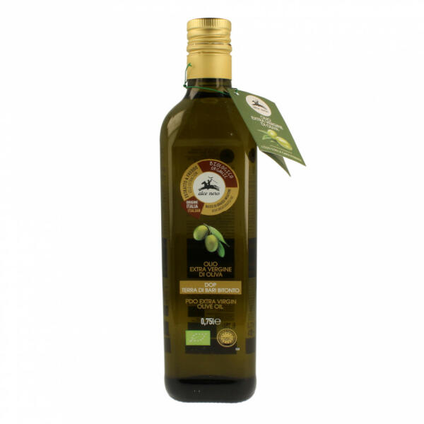 Az Alce Nero extra szűz olívaolaj D. O. P. Terra di Bari Bitonto, a Cima di Bitonto és a Coratina olíva fajták keveréke, amelyeket a Bari Murgia-ban termesztenek D. O. P. (Oltalom alatt álló eredetmegjelölés) szabályokat követve. Az őszi hónapokban kézzel szüretelt olajbogyót hidegen préselik. Zöld tónusa sárga jegyekkel, közepesen gyümölcsös illatával és enyhén keserű