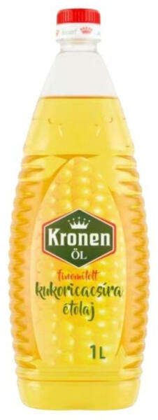 Válogatott kukoricaszemekből sajtolt tiszta növényi olaj. 1000 ml-es étolaj; Kronen termék grillezéshez, sültek készítéséhez.