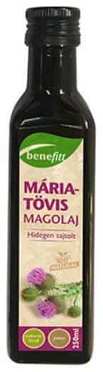 Étolaj és salátaolaj máriatövismagból, hidegen sajtolva. Májnagyobbodás, májzsugor és vegyszerek okozta májkárosodás esetén segít a szervezetnek.