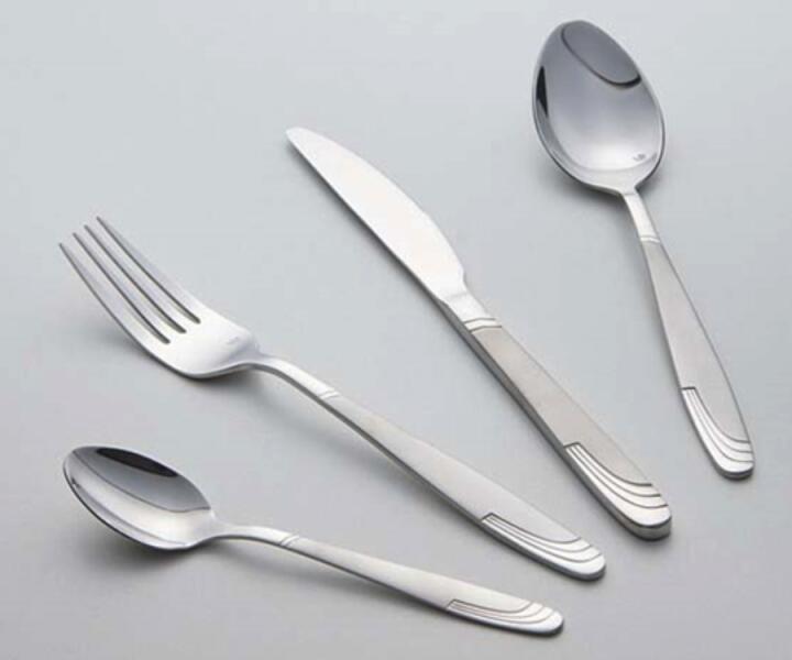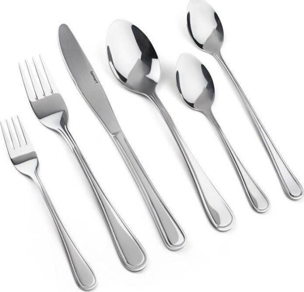 6 db kanál, 6 db villa, 6 db kés, 6 db desszertes villa, 6 db kávés-/teáskanál