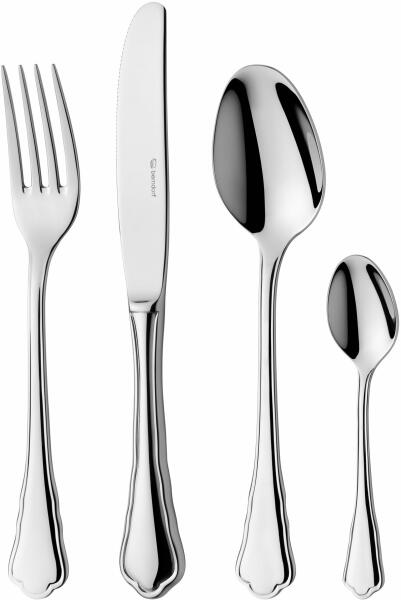 12x kanál, 12x villa, 12x kés, 12x kávés/teáskanál, 12x desszertvilla