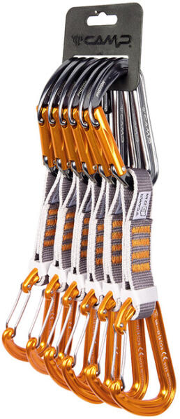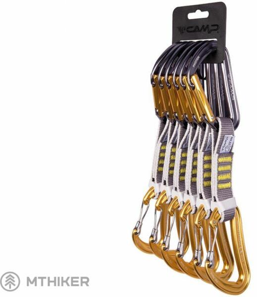 6 db keverőprés készlet ultrakönnyű CAMP Photon Straight Gate kulcsos karabinerekkel és CAMP Photon Wire karabinerekkel. A karabinereket egy 12 cm hosszú, széles poliészter hurok köti össze. A CAMP Photon Wire karabiner a legkönnyebb teljes méretű karabiner, amit a CAMP kínál. A CAMP Photon