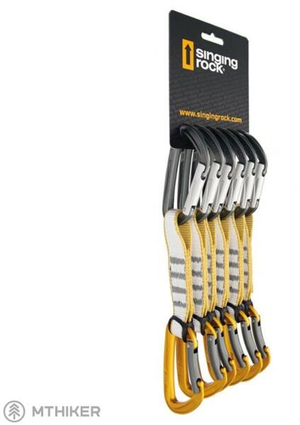 A Singing Rock Colt 16 egy előnyös árú, hat darabos expressz szett teljes key-lock zárral, mely ideális főleg a sportmászáshoz. A hot-forget I-beam könnyített konstrukciónak köszönhetően a karabinerek nagyon könnyűek, de mindamellett nagyon masszívak. * ellenálló polyamid hurok 16 mm-es vastagsággal és 12 cm-es hosszal* a felső egyenes karabiner key-lock nyelv és speciális