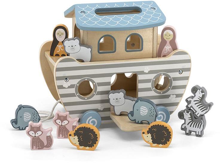 Noé és az özönvíz története játszható el ezzel az asztali kirakóval. Noé minden állatból felvitt a bárkájába kettőt, mikor víz borította el a földet. Az ismert mesét most a gyermekek is előadhatják ezzel a minőségi fajátékkal. A készlet tartalma: Noé és a felesége, a bárka, melynek felső része levehető, valamint ötféle állat, mindegyikből 2 darab. Krokodil, z
