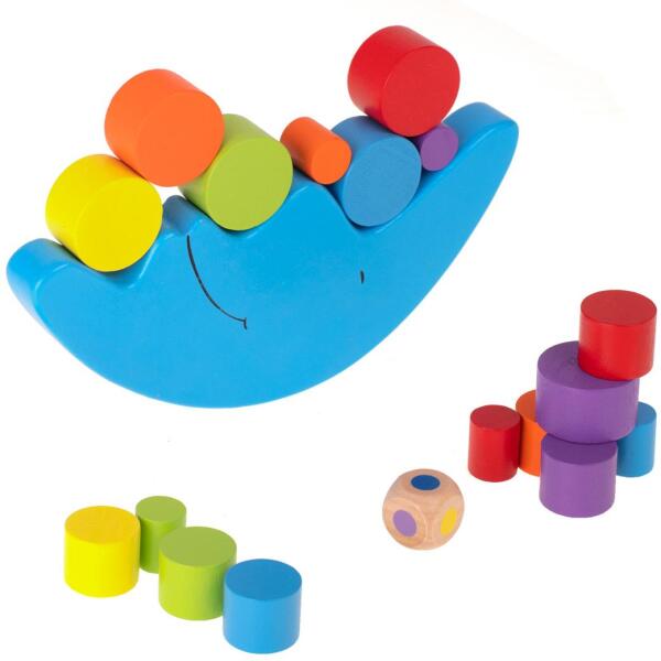 A móka az, hogy minél több színes blokkot rendezzünk el a Holdon. A látszattal ellentétben nem könnyű. A Hold folyamatosan himbálózik, miközben blokkokat helyez el rajta. Kiváló játék, amely támogathatja a tervezés és a mozgáskoordináció fejlesztését, emellett pozitívan hathat a gyermek térbeli képzeletének formálására. A készlet tartalma: hold A játék kockája 18