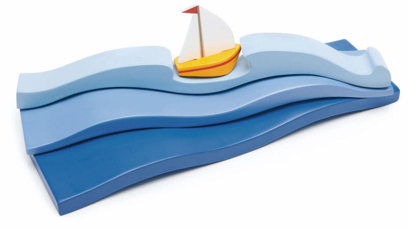 Tervezte és készítette a Tender Leaf Toys Ez 3 hullámból és egy kis hajóból álló szett tökéletesen jelezheti az óceánt a vasúti terepasztalunkon. De más nyíltvégű játék részeként is csodásan működik.