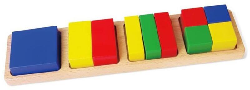 Kisgyermekek számára készült törtek tanulmányozására szolgáló játék. A kockák különböző részekre vannak felosztva, amelyeket ügyesen össze kell illeszteni, hogy egy négyzeti formát alkossanak. Ez az interaktív játék nemcsak a matematikai gondolkodást fejleszti, hanem javítja a figyelmet és a vizuális érzékelést is. Kiváló segédeszköz az iskolai előkészítéshe