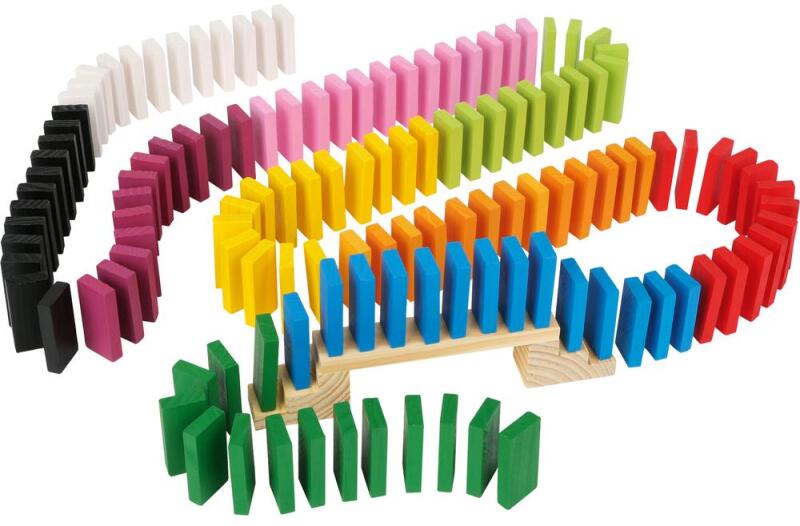 Small foot 6865 XXL méretű színes sorépítő dominó szett lépcsőkkel, hidakkal és hordozó vászonzsákkal. Ma dominónap van! Ez a jól felszerelt, fából készült dominójáték 560 dominódarabbal és 9 kiegészítővel igazán különleges! Az élénk színű dominódarabokat lépcsőkkel és akadályokkal sorban lehet felállítani. Így lehet igazán láncreakciót indítani. Ezek