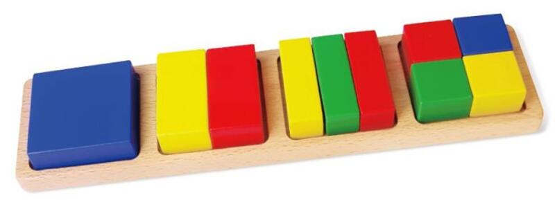 Törtek oktatása a legkisebbeknek. A kockák sok különböző részre vannak osztva, amelyeket össze kell rakni, hogy négyzet alakot hozzanak létre. Ez az oktató játék fejleszti a matematikai gondolkodást, a figyelmet és a vizuális észlelést. Segédeszköz az iskolai előkészítő feladatokhoz. A játékot színes ablakos dobozban csomagoljuk. Az esztétikus csomagolás miatt a ját