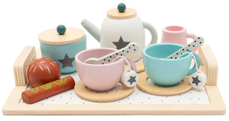A Montessori Baby Mix gyerek fa teázó készlet szórakozást nyújt és támogatja a gyermekek kreativitásának és motorikus képességeinek fejlődését. A valósághű részleteknek és gondos kidolgozásnak köszönhetően a gyerekek élvezhetik a közös „teadélutánokat barátaikkal vagy szüleikkel. A játék természetes fából készült, sima felülettel és lekerekített élekkel