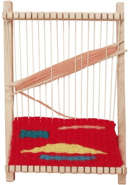 Szőjj kisebb terítőket, különböző mintákat a fa szövőkerettel! A kicsi fa szövőkeret egy egyszerű fakeret, erős szálakkal és egy szövőeszközzel. A szövőre fel kell tekerned a fonalat, és a húrok között, egyet előtte egyet mögötte fűzve tudsz alkotni. A szövés közben többféle fonalat is felhasználhatsz, a végeredmény egy csinos takaró, vagy akár karkötő is l