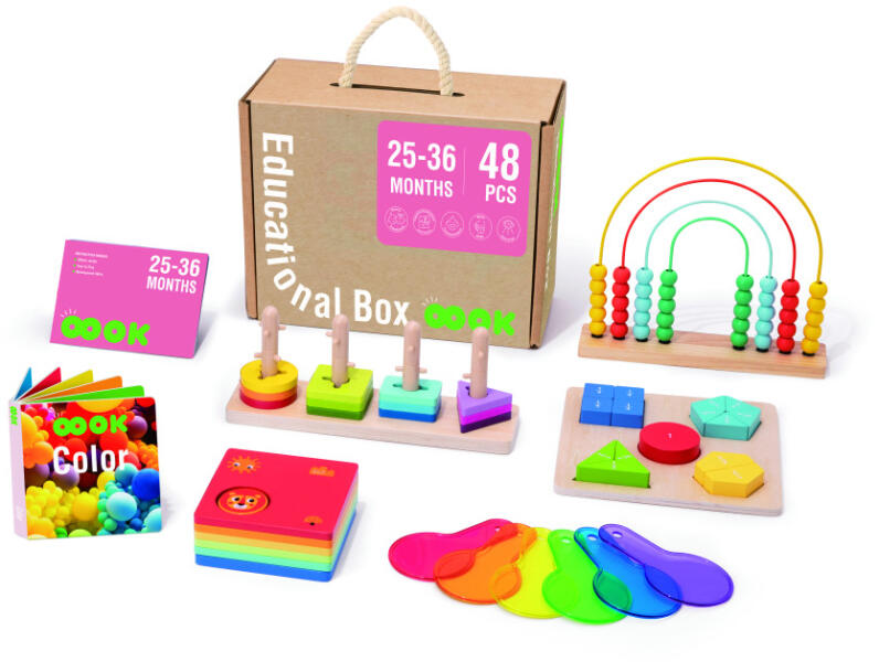 2 évesnél idősebb gyermekek számára készült 6 db szenzoros és oktató Montessori játékot tartalmaz 6 színes műanyag forma színezéshez Oktatási matematikai puzzle Színezőkönyv Támogatják gyermeke pszichomotoros készségeinek egészséges fejlődését és serkentik érzékszerveit: látást, tapintást és hallást Fejleszti a motoros készségeket, a logikus gondolkodást és