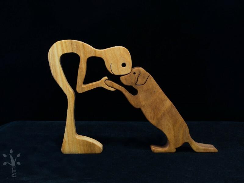 Kedves kis ajándék lehet LABRADOR kutyust kedvelő gyermeknek , de felnőttnek is ez a két elemből álló dekoráció. A kutyus és a barátja egymásba illeszthető. A nagy méretű kutyus anyaga juhar és pácolt juhar, a kis méretű figurák cseresznyefából készültek. Felületkezelése: paraffinolaj, Kétféle méretben készítjük. A méretválasztást a jobb oldalon találja. Egész