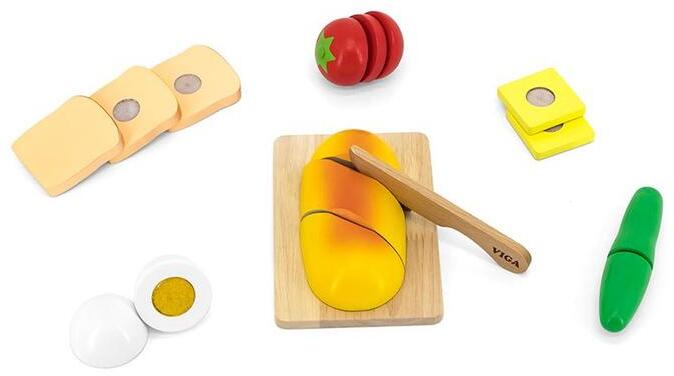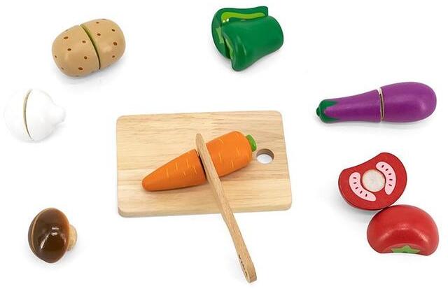 A Viga zöldségvágó készlet tökéletes választás a kisgyermekek kreativitásának ösztönzésére. A biztonságos, fából készült kés segítségével a gyerekek bátran „felszeletelhetik a burgonyát, padlizsánt vagy sárgarépát. Az egyik kiemelkedő jellemzője, hogy az összes zöldség tépőzárral kapcsolódik egymáshoz, így a játék során végtelen szórakozásra van leh