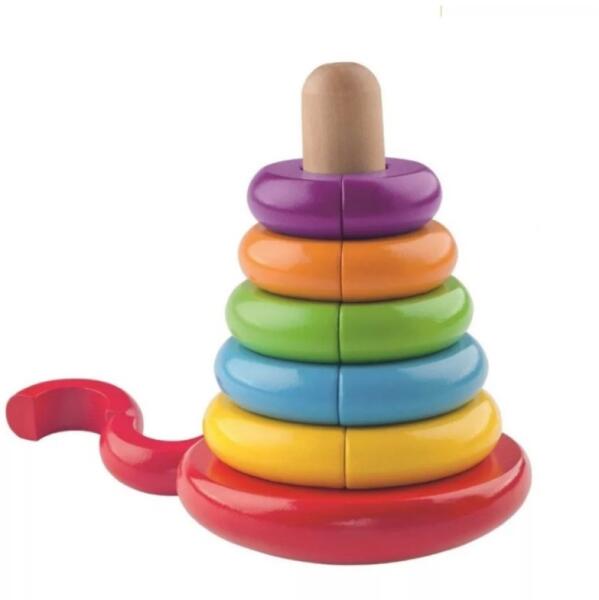Mégneses montesszori torony amivel viccesen lehet fejleszteni egy gyermek készésgeit. A karikák egymásba mágnesesen kapcsolódnak, így nem csak egy karikát kell felhelyezni a kelj fel Jancsi rúdjára, hanem meg is kell találni a félkör másik felét is, hogy ez teljesülhessen. Nagyon jó kis készségfejlesztő játék, mert ez nem egy hagyományos montesszori torony.