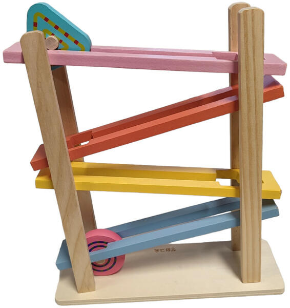 Minőségi fából készült lejtős pálya játék. Mérete: sz: 22,5 x h: 8cm x m: 25,6 cm Tartalma: 1 db fa lejtő pálya, 2db fa forma Formák a lejtőn, fa játék pálya Természetes anyagból készült, vidám színvilágú lejtőpálya 2 darab formával. Az izgalmas és mókás kikapcsolódást főként a gravitáció hatásai nyújtják, mivel az egymás alatt elhelyezett lejtőkön a for