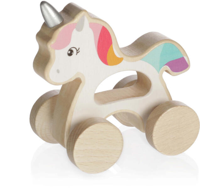 A könnyű és kompakt guruló egyszarvú ideális játék kisgyermekek kezébe. Természetes, kiváló minőségű fából készült és vízbázisú festékekkel van festve. A nagy, strapabíró kerekek könnyedén kezelik a szőnyeget, a fapadlót és a játszóteret. A játék segít a gyermek motoros készségeinek, koordinációjának és kreativitásának fejlesztésében. Ráadásul még a