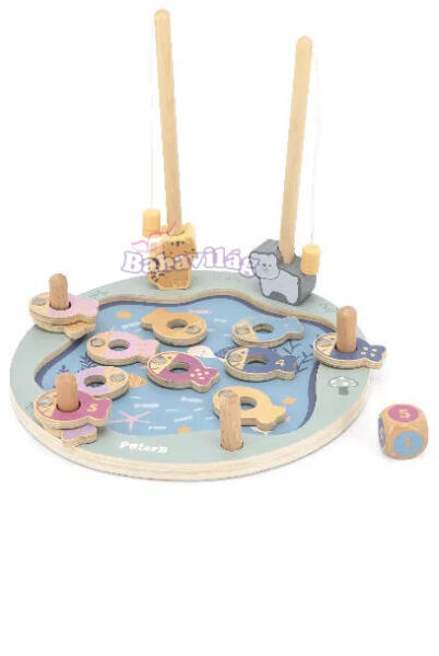 Mágneses horgászjáték, kerek tóval (PolarB). Ez a szórakoztató és izgalmas fából készült horgászjáték kiváló lehetőséget nyújt a színek megismerésére, számolási készségek, valamint a szem-kéz koordináció fejlesztésére. Egyszerre akár négy fő is játszhat, a négy mellékelt horgászbotnak köszönhetően. A játék lényege, hogy mindenki ugyanolyan színű halat