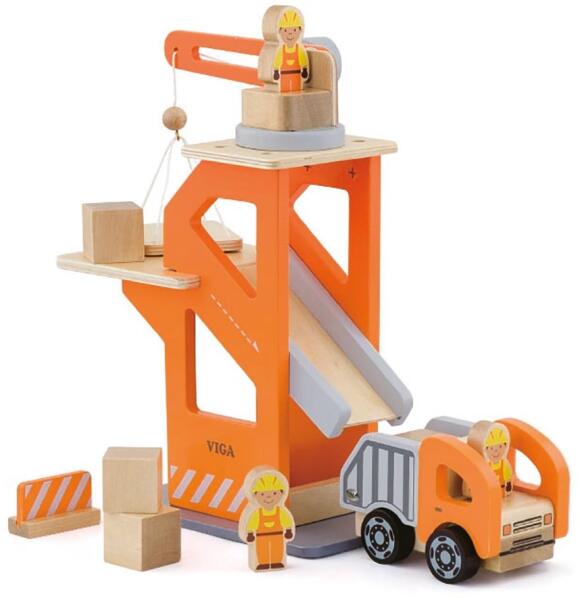 Poutavá játék, amellyel a gyermek építőkockákat szállíthat az építkezésre és biztosítja a szükséges anyagokat. A készlet tartalmazza: 3 építőmunkás figura - szép ruhában és sisakkal, billenő autó - amelyen szállíthatja az építkezéshez szükséges termékeket, daru emelővel, csúszda az építési maradványok számára, 4 építőblokk, 1 útakadály. Az egész kés