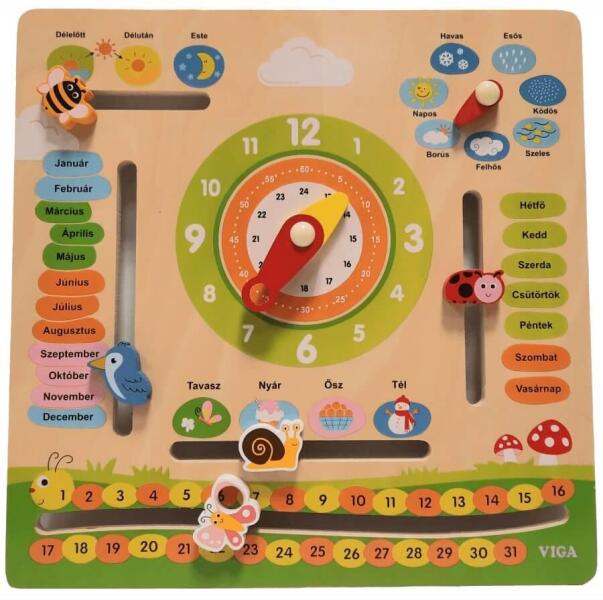 Mit kell tudni a játékról? Fából készült naptár gyerekeknek Készségfejleszt ő játék gyerekeknek az évszakok, hónapok, napok, időjárás és az óra szemléletes tanulásához. Nagyon ötletesen és érthetően ábrázolja a naptár az egyes egységeket, így a gyermeknek könnyen megmutathatjuk, hogy 24 óra eltelte mit is jelent. Azt is szemléltethetjük, hogy a napok múlásáva