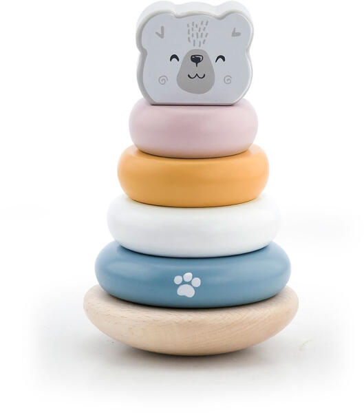 A Viga Oktató Piramis a legkisebbek számára klasszikus játék, amely szórakoztató, érdekes és kreatív játékot nyújt a gyermeknek. A pasztell színekben kapható készlet 6 különböző méretű tárcsás blokkot tartalmaz, köztük egy medvefej alakú blokkot is. Az alapon egy tüske található, amelyre a darabok felhelyezhetők. Ez a játék ideális az építőkockákkal tornyokat