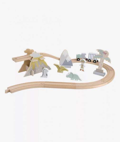 Bővítsd még hosszabbra a vasútkészletedet ezzel a 16 darabból álló, minőségi fából készült Tryco készlettel! Segítsd át a bajbajutott dinoszauruszokat a kitörni készülő vulkánon a vonataid segítségével! Ez a kiegészítő készlet síneket NEM tartalmaz! A játékkészlet összeilleszthető más Tryco készletekkel is. A játék tartalma: mozdony tehervagon vulkán hegy fa