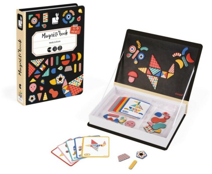 Janod mágneses kirakós, tangram, ami 43 mágneses darbból és hozzá tartozó 30db témakártyából áll. A kártyák szerint rakd ki a figurákat, jó szórakozás és elfoglaltság lesz. A tangram-os mágneses könyvet ajánljuk utazáshoz is, mert a darabok a könyvhöz tapadva nem hullanak szanaszét, így egy hosszabb utazást is megkönnyithet, ha van mivel a gyermeknek elfoglalnia magá
