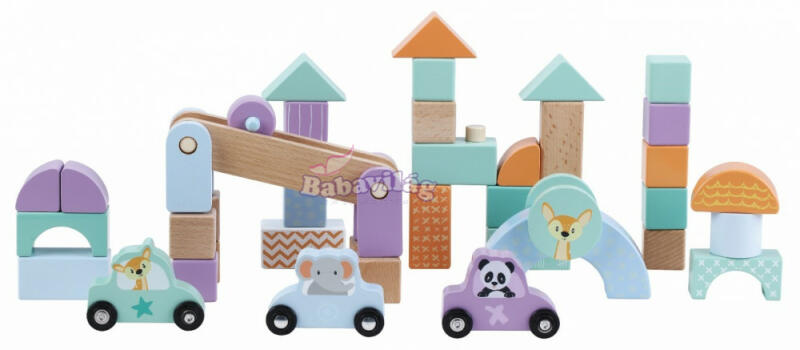 Ha a gyermek fajátékokkal játszik a kreativitása is fejlődik, mivel nem gombnyomásra működik a játék, hanem a fantáziája szerint játszhat vele. A minőségi fajátékok természetes anyagból készülnek, biztonságosak, és strapabíróak, tartósak. Nem utolsó sorban pedig generációk játszhatnak a fajátékokkal. Fa blokkok és egzotikus állatok - 60 elem. Praktikus vödörrel