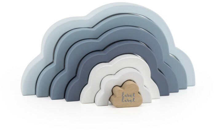 A fa szivárványépítő játékok nem véletlenül népszerűek: nemcsak szépek, de fejlesztő hatásuk is jelentős. A Label Label egyedileg kivitelezett, felhő alakú szivárványépítő játéka pedig mindkét tulajdonságot ötvözi. A játék 6 darab, különböző méretű, pasztell kék színű ívből áll és egy natúr színű felhőcskéből. Az ívek egymásba illeszthetők, így