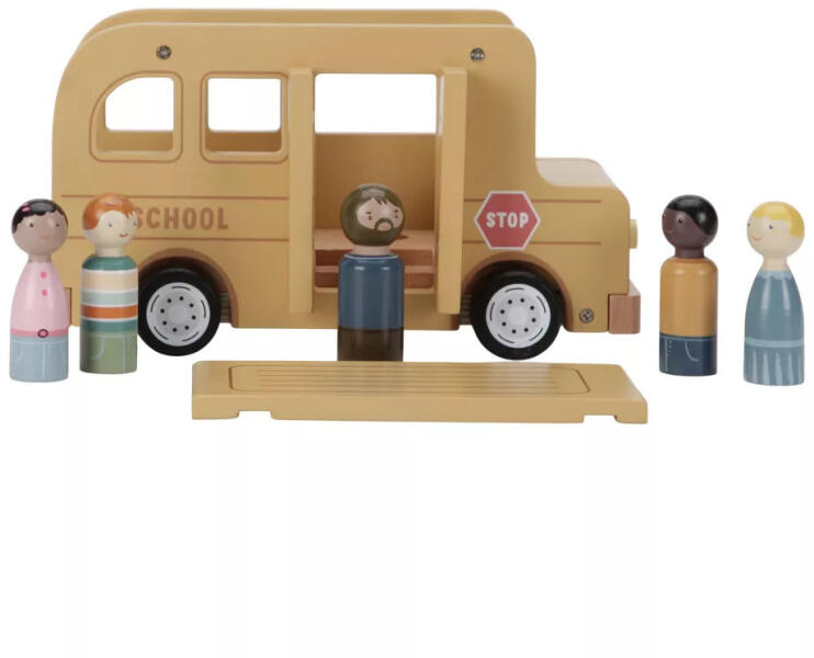 Körbe-körbe járnak az iskolabusz a kerekei. Minden gyerek ül? Amint a sofőr beindítja a motort, örömmel és felfedezéssel teli utazásra indulhat. Akár képzeletbeli városképeken navigál, akár képzeletbeli utasokat vesz fel, ez a fából készült jármű bárhová elvisz, ahová csak akarjátok.