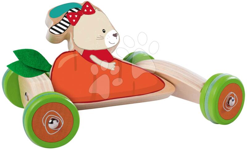 Fa kisautó Push Vehicles a német Eichhorn vállalat műhelyéből egy csodaszép ajándék minden gyerkőc részére már 12 hónapos kortól. Tarka kisautó elsőosztályú nyírfából készült, 4 kerekének köszönhetően könnyen kezelhető, felülete kellemesen sima a tapintásra. A nyuszival kiegészített készségfejlesztő kisautón keresztül a gyerekek új szinekkel és formákkal i