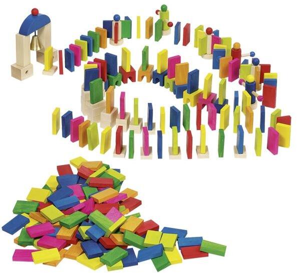Ügyességi konstrukciós fajáték: színes sorépítő dominó fa lapocskákból akadálypályákon át. A készlet 247 darab dominót és különböző pályaépítő elemeket tartalmaz, például lépcsőt, színes boltíveket, natur fa emelvényeket, forgató-, lendítő kapukat végül csengettyűs kaput, amelyek segítségével még izgalmasabbá tehető a játék. A cél az, hogy minél ho