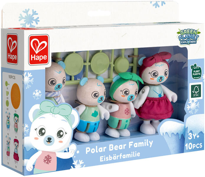 Ez az aranyos kis jegesmedve család tökéletes kiegészítője a szerepjátéknak az óvodás korú gyerekek számára. A jegesmedve család egy anyukából, egy apukából, egy jegesmedve fiúból és egy jegesmedve lányból áll. Arcukon ragyogó mosoly látható, ezzel kedves, barátságos megjelenést kölcsönöznek. A figurák különlegessége, hogy tudnak ülni, állni és meg tudják f