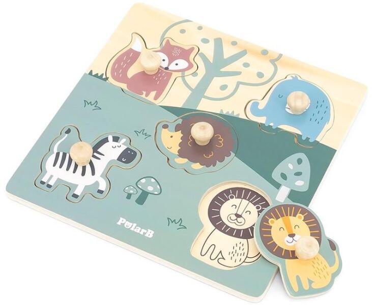 A Viga színes puzzle kiváló választás a kicsik számára, hiszen nem csupán egy hagyományos kirakó, hanem remek lehetőséget kínál arra is, hogy a gyermekek felfedezzék az első állatokat, mint például a rókát, a sündisznót, az elefántot, a zebrát és az oroszlánt. A kirakó darabjain található fa csapok megkönnyítik a gyermekek számára a fogást, így egyszerűen elhel
