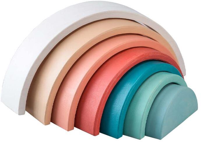 Hét színű szivárvány, fa építőjáték . Össze tudod állítani a megfelelő sorrendben? Ezek a pasztell színű, kemény fából készült, stabil félkörök könnyen bevezetik a kisgyermeket a tevékenykedve alkotás világába, és közben fejlődik a motorikus képességük. . Vízalapú és nyálbiztos - nedvességálló - festékeivel nemcsak esélyt kínálnak a színek és formák