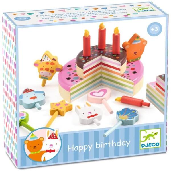Mit kell tudni a játékról? Djeco Születésnapi torta - Happy Birthday Tortás, szülinapos szerepjáték élénk színű tortaszeletekkel és beszúrható díszítő elemekkel. A különleges szülinapi torta 8 különböző kellékkel és 4 gyertyával díszíthető. A 4 szelet tetején találhtaó lyukakba kell beillesztenie a gyermeknek a díszeket, ezzel fejlődik a szem-kéz koordináció