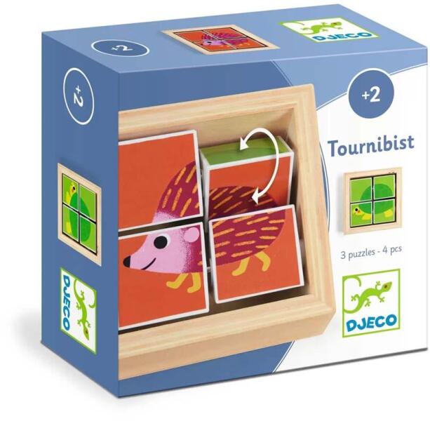 Mit kell tudni a játékról? Mesekocka - forgatható állatfigurás - Tournibist 4 elemből álló mesekockás kirakó, mellyel 3 állatfigurás képet tudnak kirakni a gyerekek. A mesekockák különlegessége, hogy a háromszögű kockák egy fa dobozban, két külön rúdra rögzítve vannak. A gyerekeknek nincs más dolga, mint a képeken található sünis, teknősös, egérkés képek rész