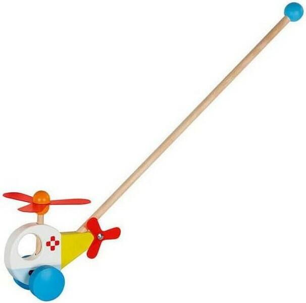 Ez a színes hellikopter vidám társ az első sétákon. A gyermek minden lépésénél elfordulnak a kerekek, vigyázz nehogy elrepüljön. A tolójátékok igazi sikert arat, ha a gyerekek első lépéseiről van szó! Ennek a játéknak a segítségével a mozgás igazi szórakozássá válik. Fejleszti a jó koordinációt, egyensúlyt és motoros készségeket. Mérete: kb. 15 cm.
