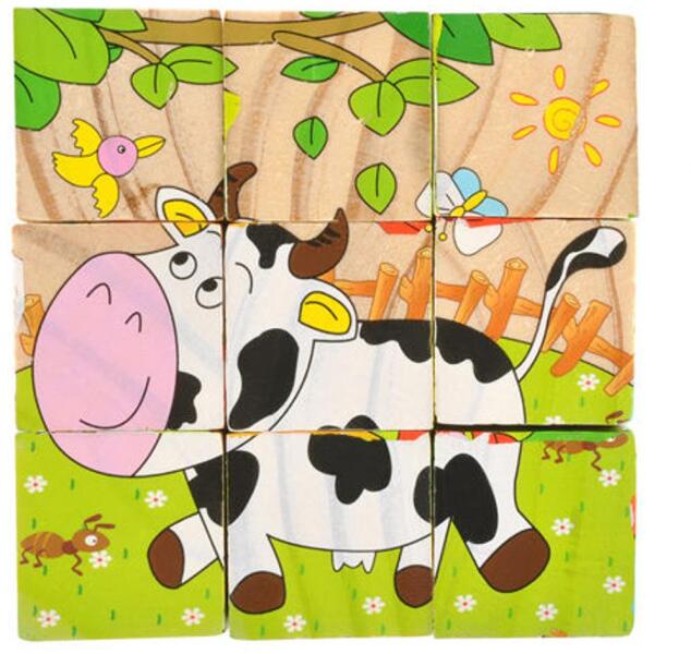 Kiváló oktatójáték, amely pozitívan befolyásolhatja a logikus gondolkodás fejlődését és formálhatja a gyermek térbeli képzeletét. Hasznos a színek és állatok nevének megtanulásakor. A készlet 9 db azonos méretű, színes fakockából áll. A blokkok teljesen biztonságosak, a fa precízen csiszolt és nem tartalmaz éles széleket. Ezenkívül a blokk nagy mérete megakadál