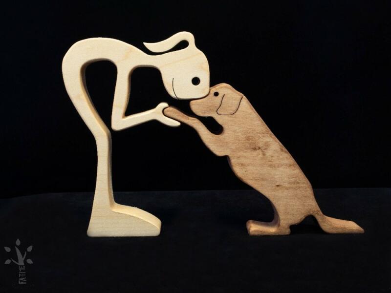 Kedves kis ajándék lehet LABRADOR kutyust kedvelő gyermeknek , de felnőttnek is ez a két elemből álló dekoráció. A kutyus és a barátja egymásba illeszthető. A nagy méretű kutyus anyaga juhar és pácolt juhar, a kis méretű figurák cseresznyefából készültek. Felületkezelése: paraffinolaj, Kétféle méretben készítjük. A méretválasztást a jobb oldalon találja. Egész