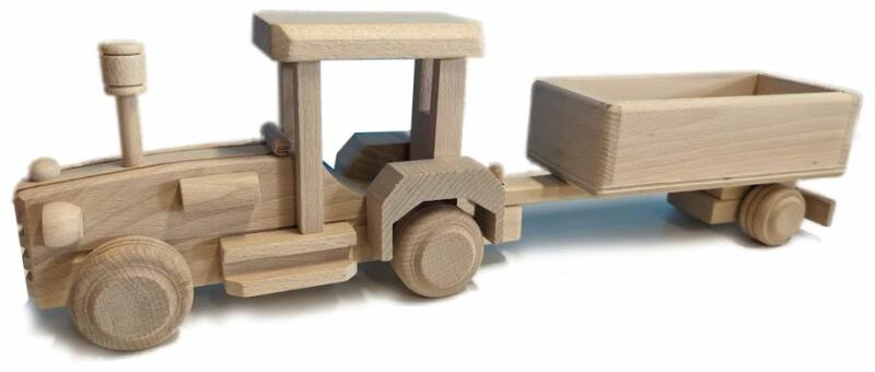 A platós traktor tömör bükkfából készült, mely nem felületkezelt. A tömör bükkfából készült játék több generáción át fog szolgálni. Minden precízen megmunkált, a fa csiszolt, a kerekek forgathatók, a plató leválasztható. Termék részletek: Csehországban készült méretek : 42 x 8 x 13 cm (szé x ma x ma) anyaga: bükkfa felületkezelés : nem szállítás: összecsu