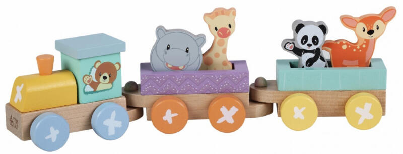 Fából készült vonat kocsikkal és állatokkal a Studio Circus sorozatból. A játék nem mérgező festékkel van festve. A játék megfelel az EN71 biztonsági szabványnak.