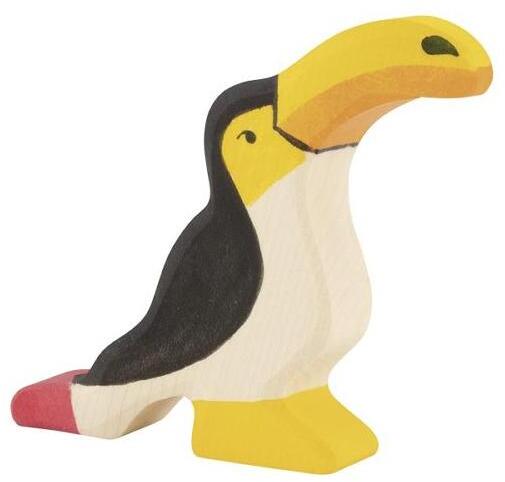 HOLZTIGER 80179 Tukán fa figuraHosszú évek óta képviselik a HOLZTIGER figurák a magas minőségű fából készült játékokat szinte egyedüliként az európai piacon. Magas értéket képviselnek a juharfából és bükkfából készült, kézzel kerekített és egyedileg, kézzel festett figurák. A játékok minden szabványnak megfelelnek, non-toxikus, vizes bázisú festékkel kezelte