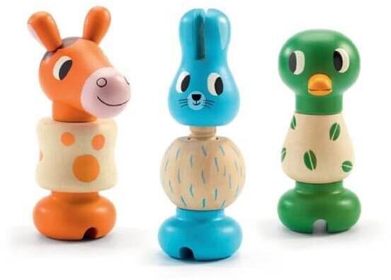Mit kell tudni a játékról? Csavaros játék - állatos Djeco fajáték kicsiknek, melyben a nagyméretű elemek összeillesztése után a csavarozás a feladata a kisgyermeknek. A csacsi, a nyuszi és a kacsa egyenként három nagy elemből áll. A fej maga a csavar, a talp pedig az anya. Az állatkák teste, pocakja felhúzható a fejből induló hosszú csavarra, és az anyát úgy kell felcs
