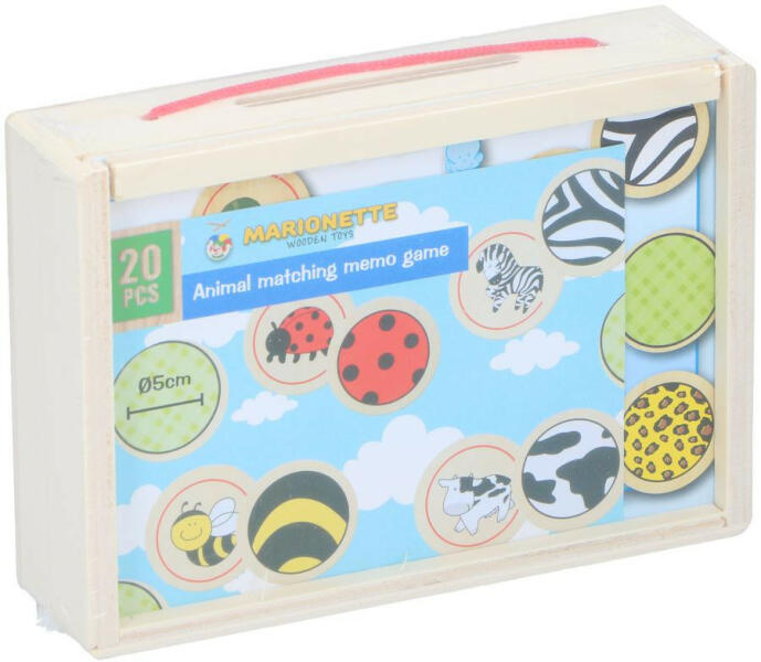 Fa memória játék 20 részes A Fa memória játék segítségével a gyerekek megismerhetnek számos állatot. A különleges fa memória játék tökéletes a kicsik megfigyelőképességének, logikus gondolkozásának és memóriájának fejlesztésére. Megdolgoztatja a gyerekek agyát, hiszen nem teljesen egyformák az ábrák a párokat alkotó korongokon. A párok egyik eleme magát az á