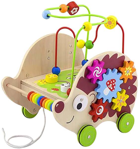 Ez a kedves kis sünis húzogatós játék igazán multifunkcionális darab! Többféle módon is lehet vele játszani. A süni ormányánál elhelyezkedő színes gyöngyöket tologatni lehet, mintha abakusz lenne. Velük a színek neve is elsajátítható. A kis kocsi tetején egyrészt labirintusjáték van, másrészt golyóvezető . Igazán kedvelt mindkettő a kisgyermekek körében! A finom